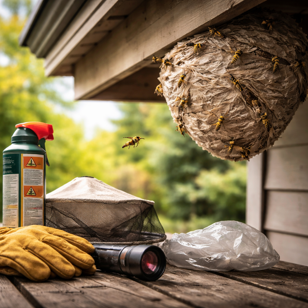 | Wasp-specific insecticide spray | Fast knockdown of foraging wasps |