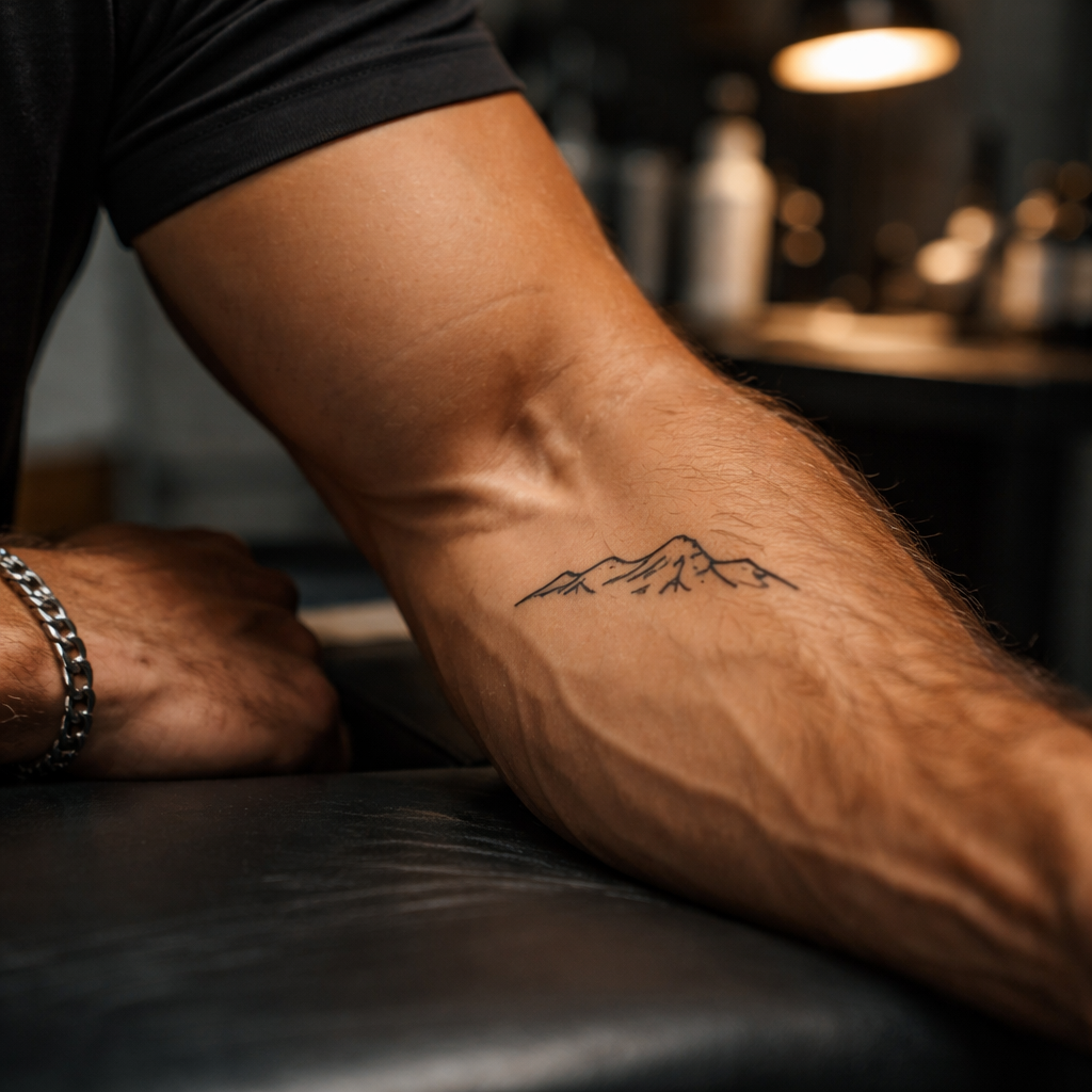 One point that often gets overlooked: the size of a minimalist tattoo shouldn’t be driven by a desire to make it invisible. Many men go too small, and the design loses its impact or clarity within a few years as the skin changes. A slightly larger version of the same motif will hold up better and remain legible over time.